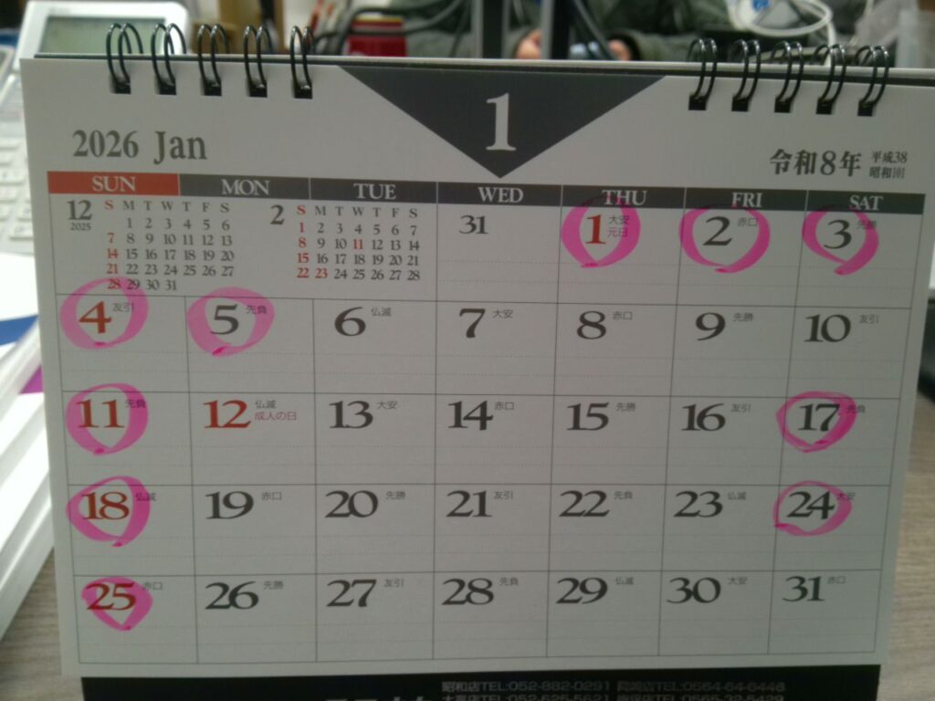 2025.12.26お知らせ 1月営業日 SHAREシェアする ブログ一覧 CATEGORY カテゴリ お知らせ LATEST 最新記事 2025.12.26 1月営業日 2025.11.29 12月営業日 2025.10.29 11月営業日 2025.10.02 10月営業日 2025.09.03 9月営業日
